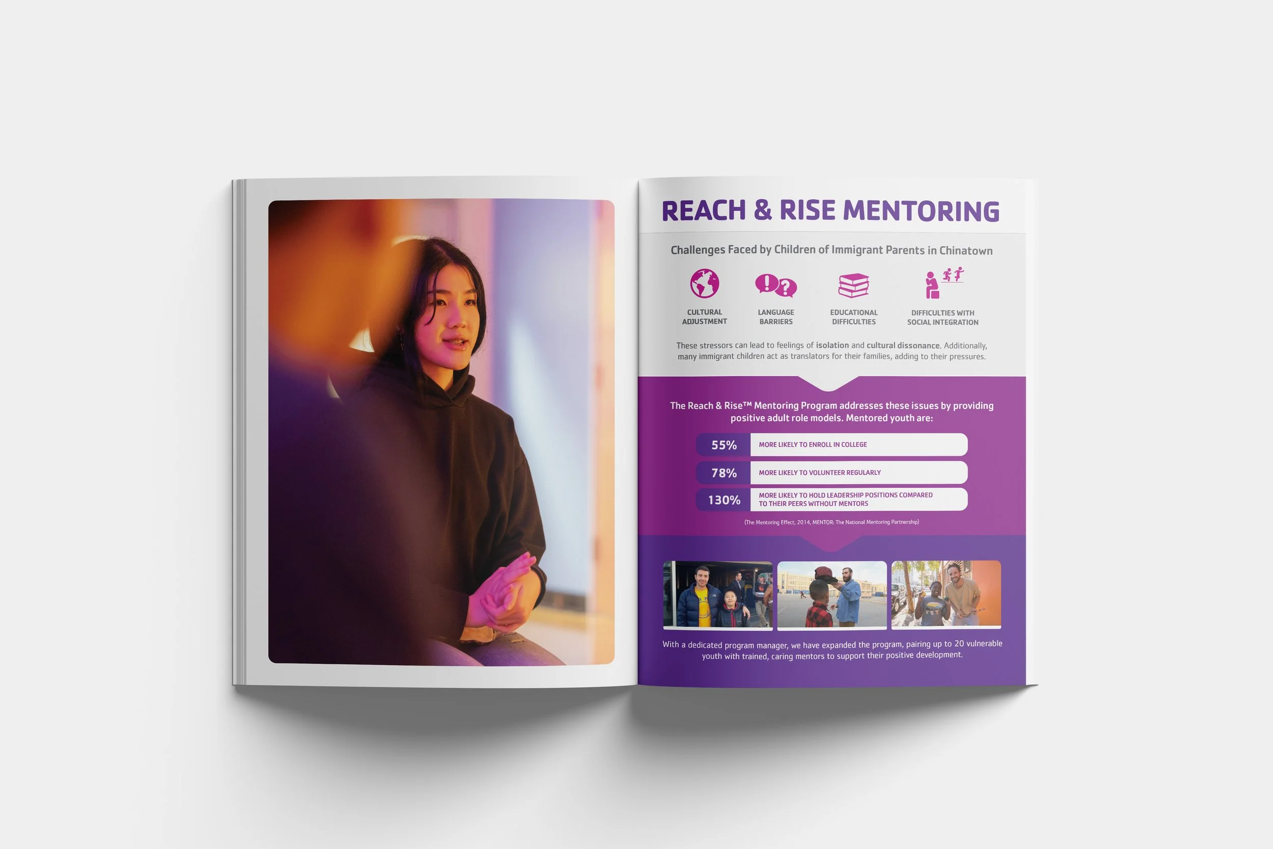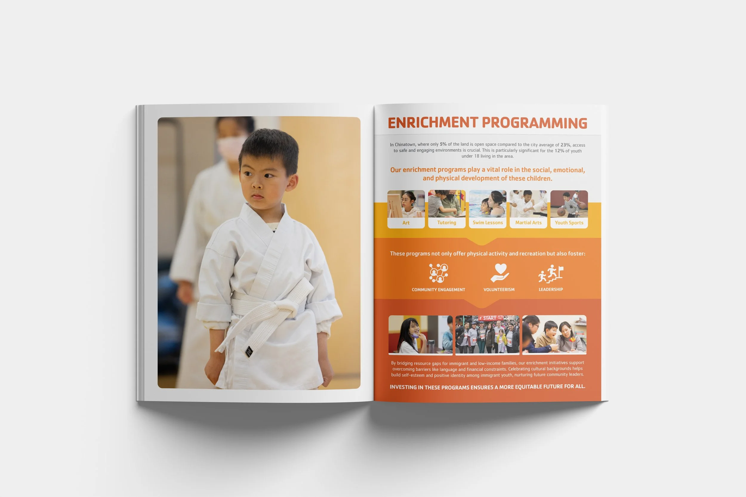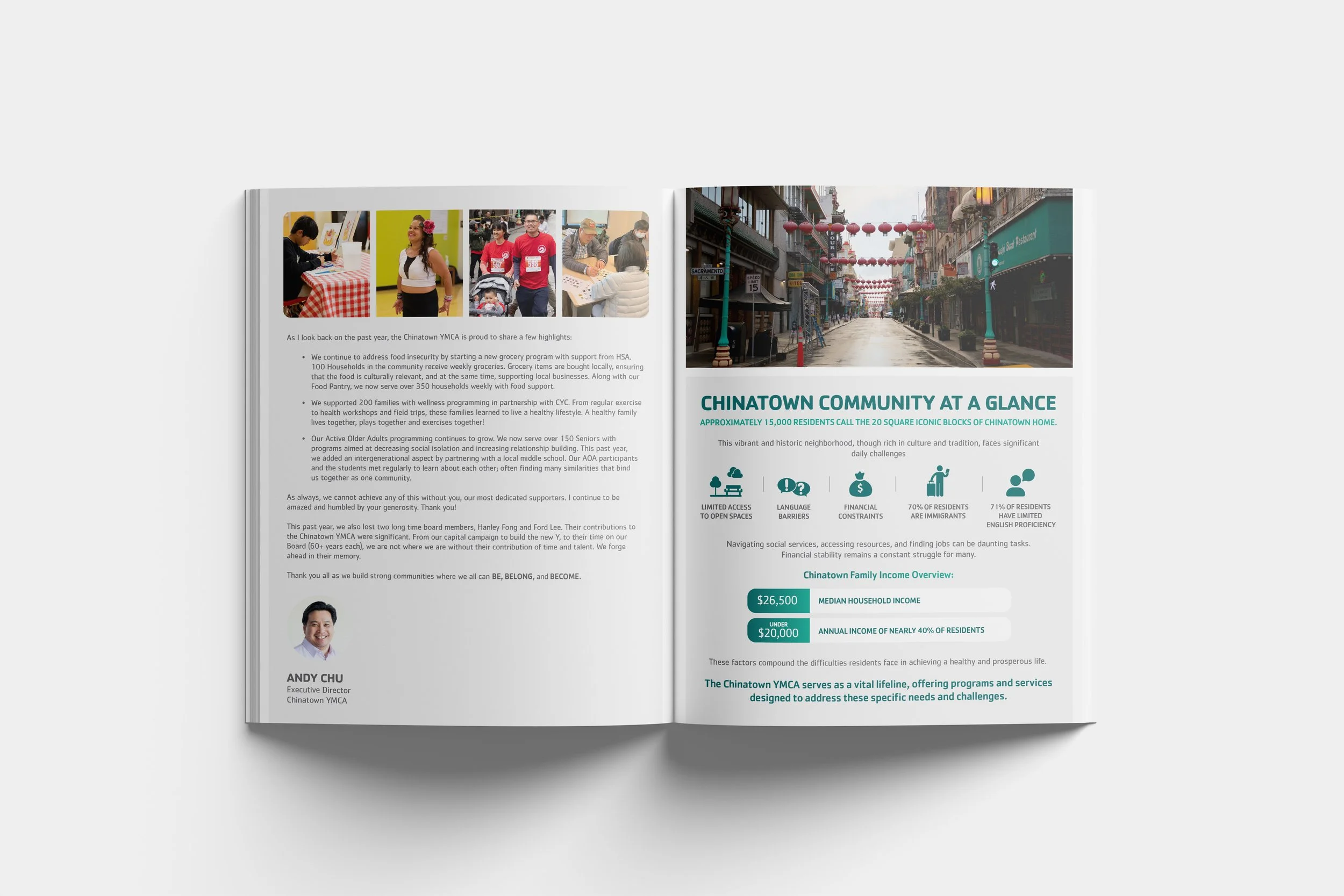 This annual report was created to highlight Chinatown Y’s impact in their community. The team really liked what I designed for the YMCA of San Francisco and wanted something similar that would complement it. I wanted the report to feel unique to Chinatown Y while still maintaining the same aesthetic to tie everything together.